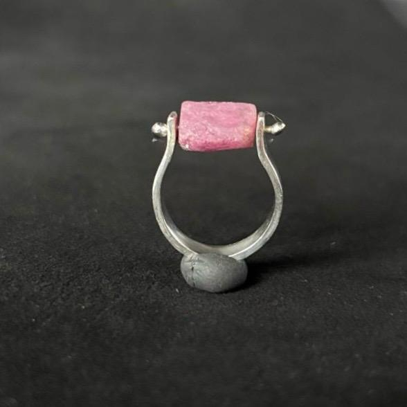 Inel romantic cu rubin neslefuit, original Lárgenteria R.E.M.