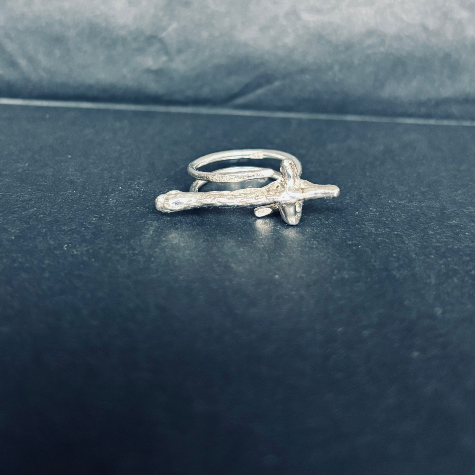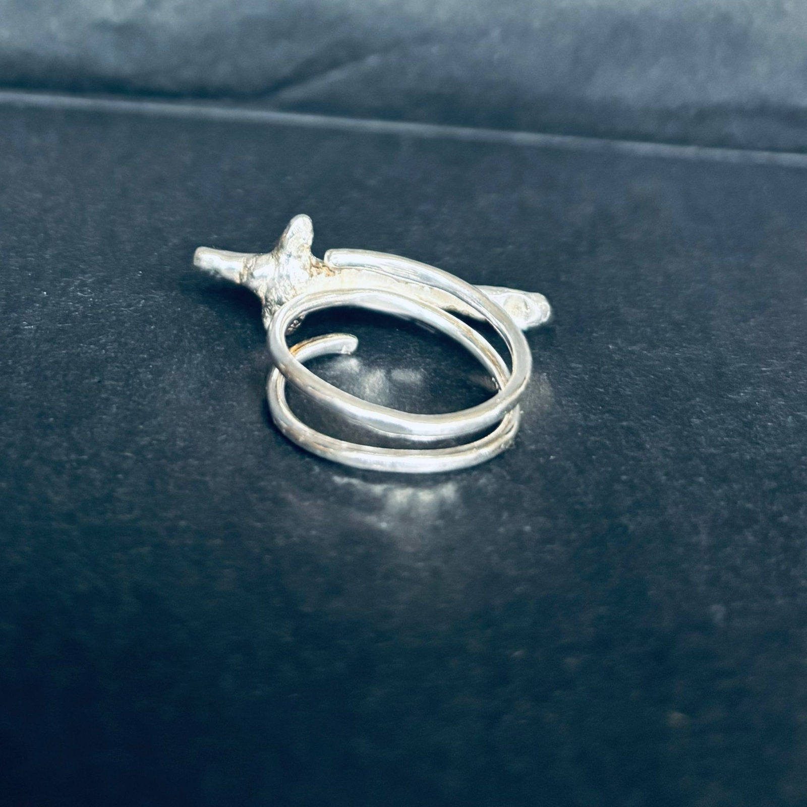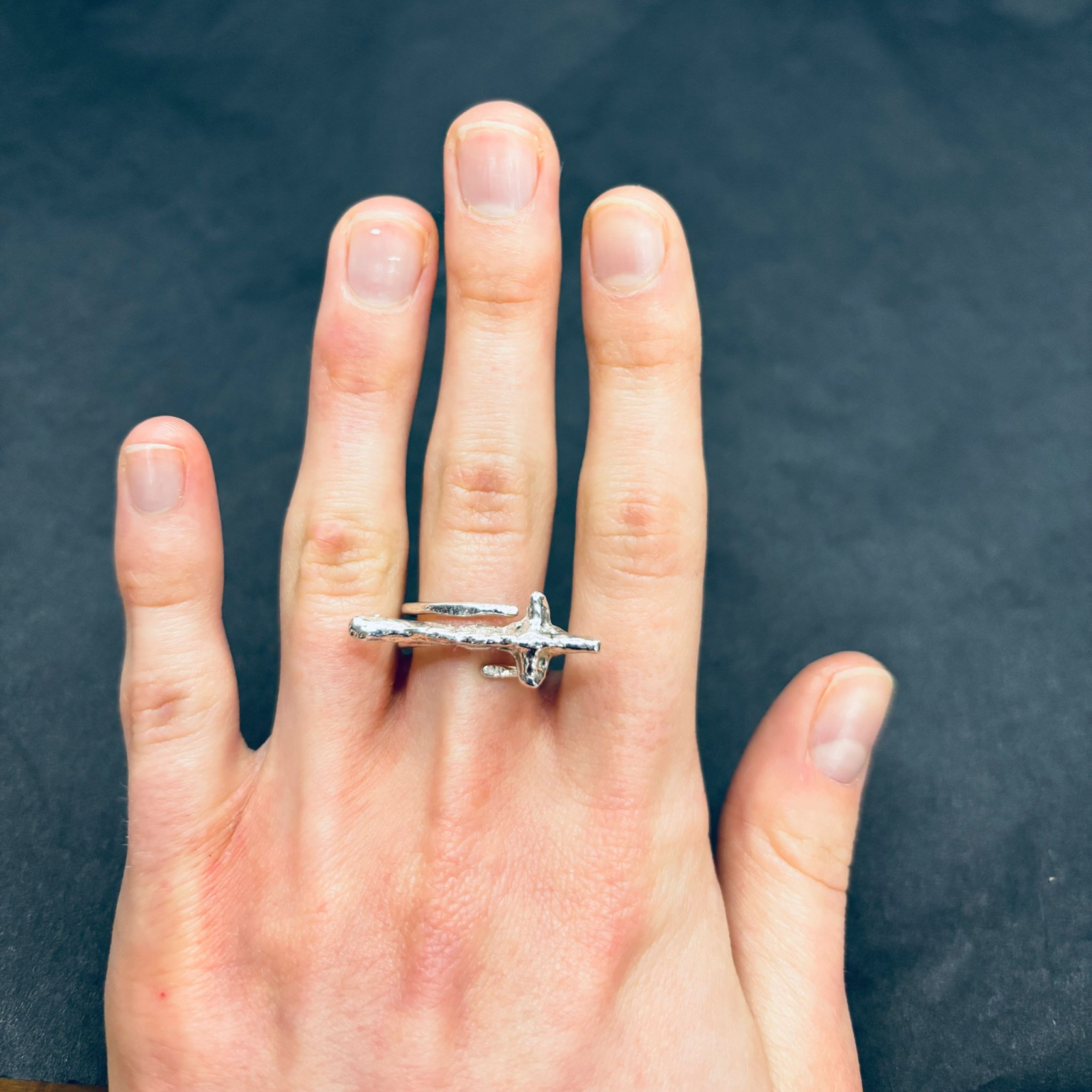 Inelul este confectionat manual, din argint 925, reglabil.