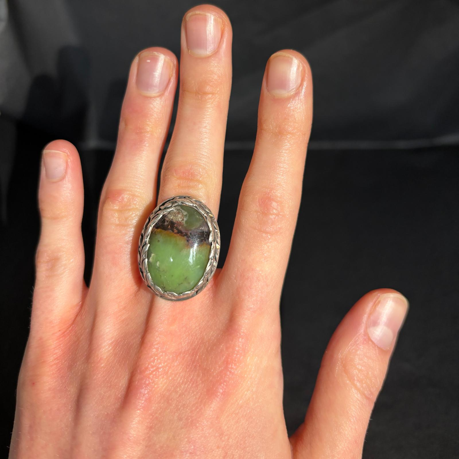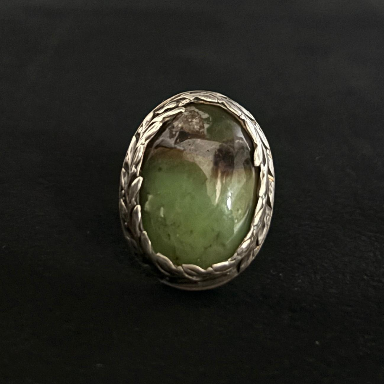 Inel din argint, unicat, cu piatra naturala de crisopraz, model original Lárgenteria R.E.M.